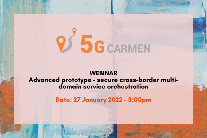 Aim of this 5G-CARMEN webinar which will take place on January 27 at 3:00 pm CEST is to present the enablers of the Orchestrated edges platform in the view of distributed Cooperative, Connected, and Automated Mobility (CCAM) service deployment, service continuity, and cross-border aspects. We will also present the software components that were designed and developed to provide secure, cross-border, and multi-domain service orchestration, as well as the plan for platform validation and testing.