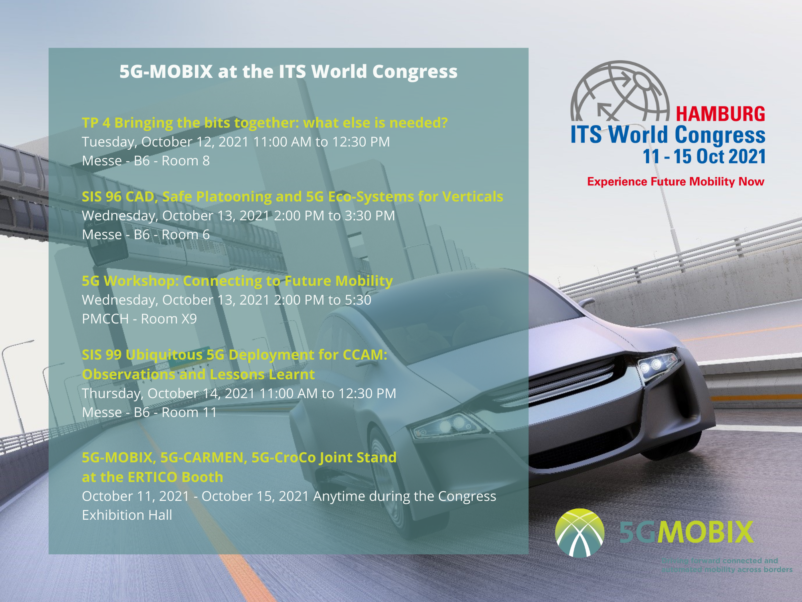 Throughout the congress, 5G-MOBIX will have an exhibition stand at the ERTICO booth together with 5G-CARMEN and 5G-CroCo.
